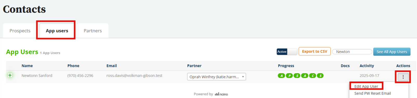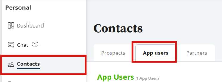 - Access the App user tab by going to 'Contacts' then 'App Users' under a specific Loan Officer.