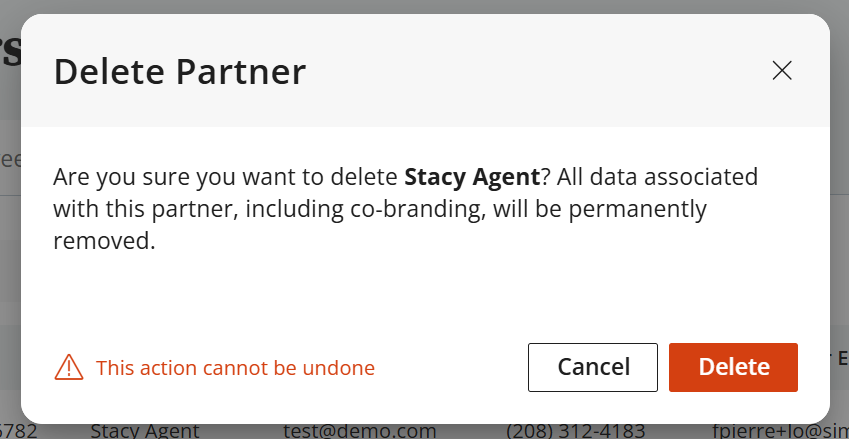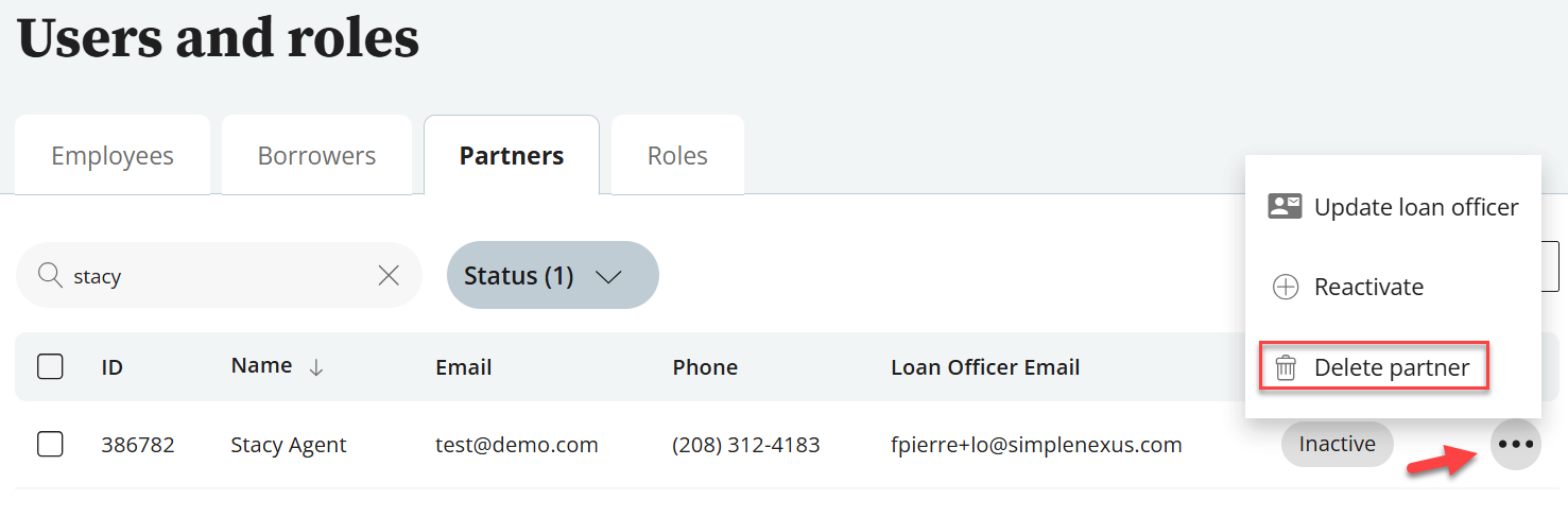Loan officers and Admins can remove partner accounts.