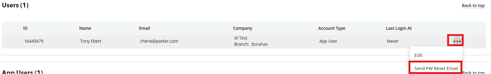 - App Users tab of the Contacts page