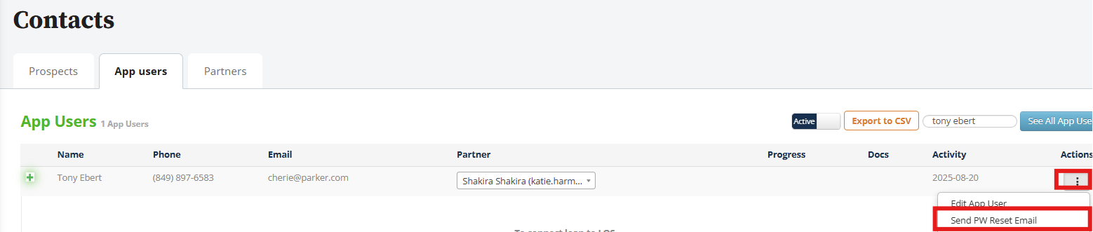 - Company Admins and Loan officers can manually send borrower a Password Reset email. Once the password has been reset, the failed login attempts resets to 0 and the user should be able to log into their account with their new password. This can be done from: