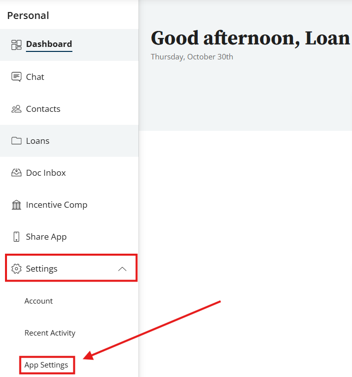 - Navigate to Settings → App Settings using the left toolbar.