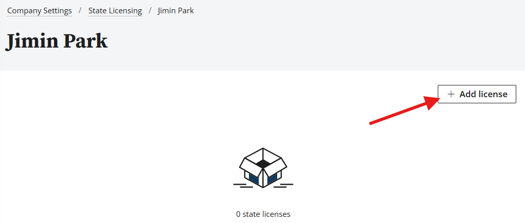 - Click Add license to add a new state license.