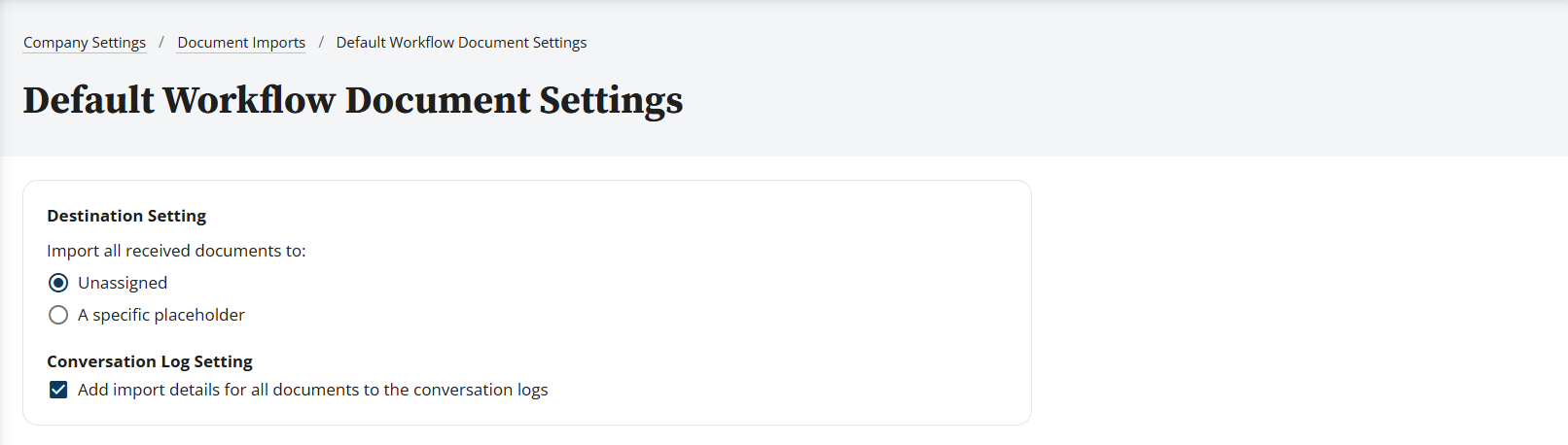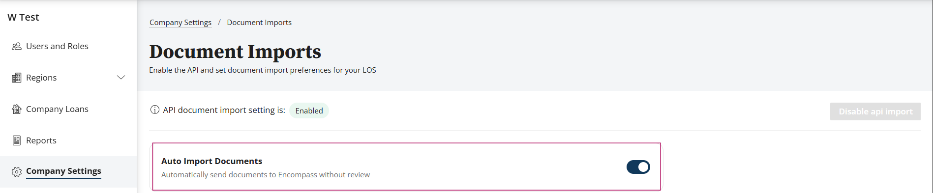 Navigate to the Document Imports tile in Company Settings.