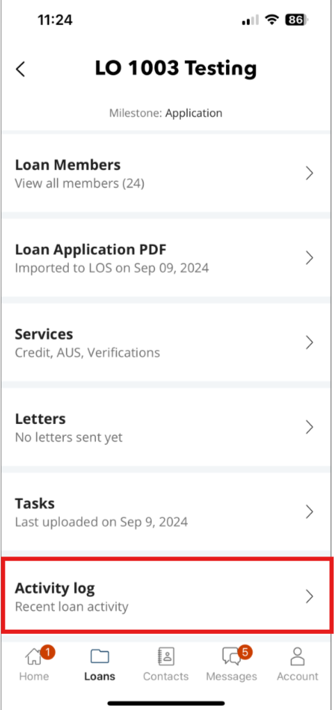 Need to see what actions have been taken on a loan and who performed them? The loan details overview page has an activity log that displays actions and events that have taken place on a loan, who completed them, and when.